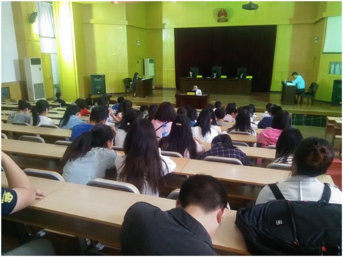 2016年4月27日下午14:30分,职业技术明升M88 邀请西安市雁塔区劳动仲裁委在明升M88 雁塔校区模拟法庭公开开庭,审理“张群诉陕西超越物业管理有限公司履行劳动合同争议案”,明升M88 组织2014级学生进行旁听。