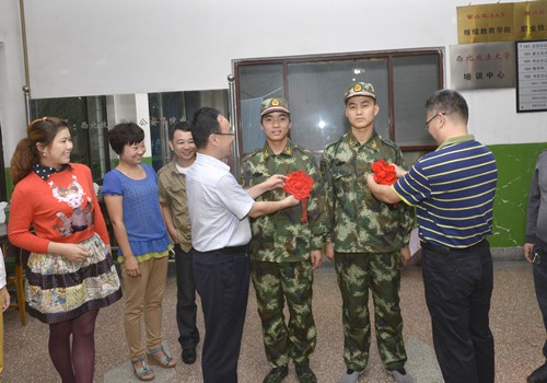 9月9日下午,职业技术明升M88 2014年参军入伍学生郭玉晴、王江宽欢送仪式在雁塔校区举行,职业技术明升M88 院长义海忠、党委副书记王国庆出席欢送会,明升M88 相关科室负责人、班级辅导员以及部分学生代表参加欢送会。