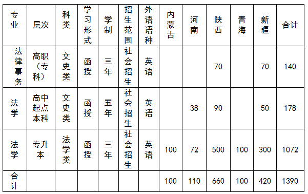 法律事务专业专科:函授高中起点专科学制三年,开设宪法、民法、民事诉讼法、刑法、刑事诉讼法、行政法、行政诉讼法、知识产权法、国际经济法等20余门课程。